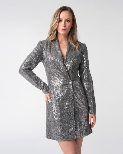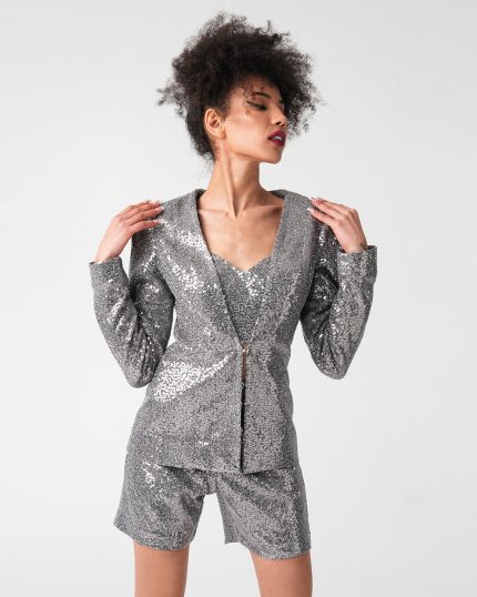 SILVER SEQUIN SINGLE BREASTED BLAZER